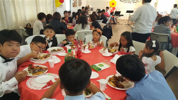 금년에도 찬양과 율동 그리고 교회음악학교에서 배운 각종 악기연주로 어른들을 기쁘게 해드렸습니다. 응석받이 어린 아이들까지도 부모님들에게 음식과 디저트를 가져다 드리는데, 혹시 쏟지나 않을까? 하고 걱정스러웠지만 그런 아이들의 모습이 기특하고 귀여웠습니다.