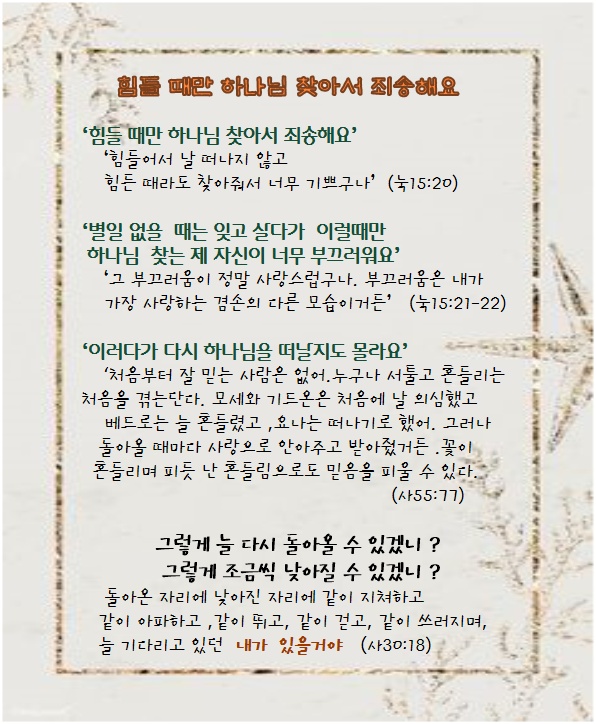 - 이전글12월 15일 충성된 일꾼의 자질, 겸손하고 바른 언어 습관 23.12.14