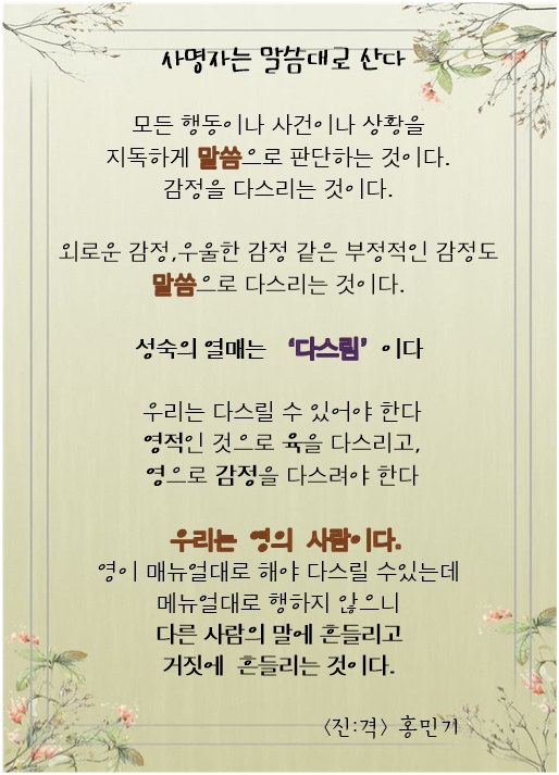 것을 권고합니다. 그리하면 깨닫고  경성하게 된다는 것입니다. 또한 지혜롭고 명철