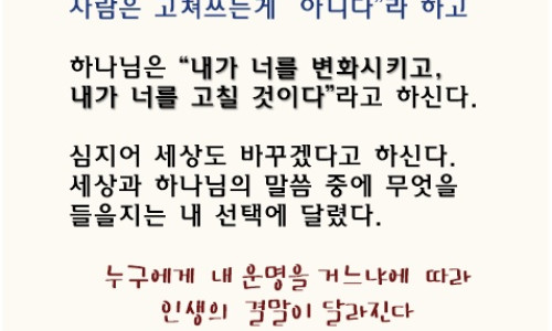 본문 : 에베소서 2:1-10모든 사람이 범죄하여 하나님의 영광에 이를 수 없는 존재가 되었으나 하나님께서는 죄에 대한 형벌을 우리 대신 독생자 예수께 담당케 하셔서 우리를 구원해 주셨습니다. 그 결과 죄범한 영혼은 믿음을 통해서 영생과 평강을 얻게 되었고, 이러한 자들을 하나님께서는 천국 시민으로 삼아주시고 영생을 기업으로 주셨습니다.인간의 본래 상태(1-3) 예수를 만나기 전의 인간은 본래 허물과 죄로 죽었던 자였고이 세상 풍속을 따라 사는 마귀의 종이었다고 바울은 말합니다. 또한 세상 유행에맹종하며 육신의 욕심에 사로잡혀 있는, 저주를 받은 진노의 자녀였다고 합니다. 사실 구원받기 이전의 우리의 상태는 죄로 인하여 하나님과 영적으로 단절되어 심판이외에는 아무것도 기대할 수 없는 상태에 놓여 있었던 것입니다.그리스도와 함께 산 자(4-7) 그런데 우리는 하나님의 사랑과 구속의 은혜로 말미암아 그리스도의 부활과 승천, 영광의 자리에 함께 참여하게 되는 축복을 받게 된 것입니다. 그러나 바울은 하나님의 사랑의 행동을 묘사하기 이전에 다시 한번 인간의비참한 상태를 강조합니다. 하나님의 사랑은 ‘우리가 죄와 허물로 죽었을 때’ 베풀어졌으며, 드디어 하나님은 ‘우리를 그리스도와 함께 살리셨고’, ‘함께 일으키셨고’, ‘함께 앉히셨다’라고 하십니다. 이와 같은 은혜를 베푸신 이유는 하나님의 걸작품인 구속받은 우리를 보시는 하나님의 은혜가 지극히 풍성하시기 때문입니다.믿음으로 인한 구원(8-10) 우리의 구원은 인간의 노력이나 공로로 이루어지는 것이아니라 하나님으로부터 값없이 주어지는 선물로 말미암아 된 것입니다. 또한 구원은얻은 것이지 이룬 것이 아님을 보여줍니다. 그러므로 바울은 “우리는 그의 만드신바라 그리스도 예수 안에서 선한 일을 위하여 지으심을 받은 자”라고 말합니다. 따라서 구원은 전적인 하나님의 은혜요, 선물입니다. 다만 우리에게 요구되는 것은 하나님의 은혜의 선물을 믿음으로 받아들이고 그 은혜의 선물에 합당한 삶을 사는 것으로서, 하나님이 기뻐하시는 일에 힘쓰며 하나님께 영광돌리는 삶을 사는 것입니다(고전10:31-33). http://qt.swim.org/user_utf/life/user_print_web.php ka