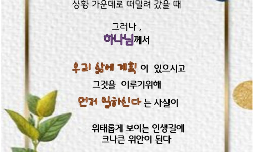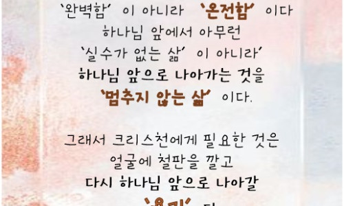 본문 : 히브리서 6:1-12 (찬송가 436장 나 이제 주님의 새 생명 얻은 몸 ) 제목 : 성장하는 신앙, 부지런히 선행 ▪ 성경 구절 : (히 6:1)그러므로 우리가 그리스도의 도의 초보를 버리고 죽은 행실을 회개함과 하나님께 대한 신앙과(히 6:2)2)세례들과 안수와 죽은 자의 부활과 영원한 심판에 관한 교훈의 터를 다시 닦지 말고 완전한 데로 나아갈지니라(히 6:3)하나님께서 허락하시면 우리가 이것을 하리라(히 6:4)한 번 빛을 받고 하늘의 은사를 맛보고 성령에 참여한 바 되고(히 6:5)하나님의 3)선한 말씀과 내세의 능력을 맛보고도(히 6:6)타락한 자들은 다시 새롭게 하여 회개하게 할 수 없나니 이는 그들이 하나님의 아들을 다시 십자가에 못 박아 드러내 놓고 욕되게 함이라(히 6:7)땅이 그 위에 자주 내리는 비를 흡수하여 밭 가는 자들이 쓰기에 합당한 채소를 내면 하나님께 복을 받고 (히 6:8)만일 가시와 엉겅퀴를 내면 버림을 당하고 저주함에 가까워 그 마지막은 불사름이 되리라(히 6:9)사랑하는 자들아 우리가 이같이 말하나 너희에게는 이보다 더 좋은 것 곧 구원에 속한 것이 있음을 확신하노라(히 6:10)하나님은 불의하지 아니하사 너희 행위와 그의 이름을 위하여 나타낸 사랑으로 이미 성도를 섬긴 것과 이제도 섬기고 있는 것을 잊어버리지 아니하시느니라(히 6:11)우리가 간절히 원하는 것은 너희 각 사람이 동일한 부지런함을 나타내어 끝까지 소망의 풍성함에 이르러(히 6:12)게으르지 아니하고 믿음과 오래 참음으로 말미암아 약속들을 기업으로 받는 자들을 본받는 자 되게 하려는 것이니라 ▣ 본문 해석 본문은 오랜 신앙생활에도 불구하고 여전히 어린 아이와 같은 신앙을 갖고 있음에 대한 질책(5:11-14)에 이어 성숙한 신앙인이 되어야 한다고 권면하고 있습니다. 나아가라(1-3) 본 서신의 저자는 그들에게 앞을 향하여 나아가라고 명령합니다. 옛 유대교의 관습과 모든 악한 행실을 버리고 삶 속에서 하나님의 사역과 권한에 순종하여 더욱 성숙한 신앙인이 되기를 권면합니다. “하나님께서 허락하시면 우리가 이것을 하리라” 이것은 하나님의 주권을 강조한 조건문으로써, 모든 것이 하나님께서 도와주실 때 가능함을 시사합니다. 그리스도인들이 완전, 곧 성숙으로 나아가는 것은 하나님의 축복입니다. 타락의 위험(4-8) 한번 비췸을 얻고(복음의 진리를 믿고 받아들인 행위), 하늘의 은사를 맛보고(성령의 은사), 성령에 참예한 바 되고(성령 체험), 선한 말씀을 맛보고(하나님 말씀의 귀중한 가치를 깨달았다는 의미), 내세의 능력을 맛보고(그리스도의 재림과 더불어 장차 올 세계의 능력을 깨달았다는 의미) 타락한 자들은 다시 주께로 돌아 올 수 없다고 말합니다. ‘땅’은 그리스도인들을 비유한 것이며, ‘비’는 하나님의 은혜와 성령의 감화 등을 비유한 것입니다(사44:3;55:10). 밭을 가는 농부가 열심을 다해 밭을 갈았을 때 밭이 그에 맞는 소출을 내면 농부가 기뻐하고 즐거워하는 것처럼 7절의 말씀은 그리스도인들이 성숙한 신앙으로 발전해 나아갈 때 은혜를 베푸시고 돌보신 하나님께서 기뻐하시고 그들에게 복을 주신다는 말씀입니다. 반면에 ‘가시와 엉겅퀴를 낸다’는 것은 그리스도인들의 신앙이 성장하지 못하고 배도함을 의미하는 것으로 그것의 ‘마지막’, 즉 결과는 불사름을 당하게 될 것이라고 말씀합니다. 부지런하라(9-12) ‘이같이 말하나’는 저자가 자신의 말투가 너무 가혹했었다는 것을 생각하고 의식적으로 격려의 말로 바꾸고 있음을 나타냅니다. 편지의 수신자들은 배도할 가능성이 있었으나 결코 배도자들은 아니었습니다. 오히려 그들에게는 구원받은 것의 증거가 될 수 있는 선행의 열매가 있었습니다. 그들은 선행을 행했을 뿐만 아니라 사랑으로 성도들을 계속적으로 섬겼습니다. 그들의 선행은 형식적인 믿음에 그치는 것이 아니라 행위를 통해 고백되는 진실한 것이었습니다. 또한 저자는 그들 모두가 하나님 앞에서 깨어 하나님이 보시기에 부끄러움 없는 삶, 즉 믿음으로 선행을 행하며 하나님과 성도들을 섬기는 삶을 계속하기를 바라고 있습니다. 저자의 궁극적인 관심은 예수 그리스도로 말미암은 구원이었습니다. ▣ 기도: 하나님, 은혜와 능력을 맛보고도 주님을 다시 십자가에 못 박늠 것과 같은 죄에 빠지지 않기를 원합니다. 매일 선한 말씀을 경험해 하나님이 기뻐하시는 열매를 맺게 하소서. 사랑으로 섬기고 소망 가운데 인내하며 하나님의 상속자님을 보여 주는 성도가 되게 하소서. http://qt.swim.org/user_utf/life/user_print_web.php ka