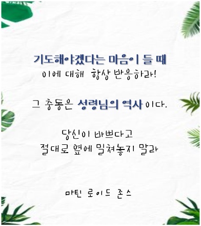 ※ 오늘의 기도: 하나님! 완악한 저를 돌이키셔서 구원으로 인도해 주시니 감사합니다. 지금까지 제 인생을 주관하시는 하나님의 일하심을 선명히 알게 하셔서 더욱 하나님만 의지하게 하소서. 향기로운 삶의 간증이 많은 영혼을 변화시키고 성장하게 하는 밑거름이 되게 하소서.