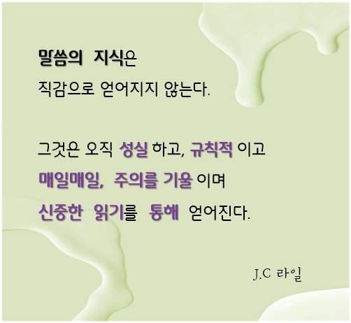 ※ 오늘의 기도: 하나님, 구원의 역사를 위해 사람과 상황을 들어 주권적으로 인도하시는 하나님의 계획을 환영합니다. 말씀을 따라 가는 길이 비난과 고만의 연속이라도 뒤로 물러서지 않고 묵묵히 가게하소서. 하나님의 일을 잠잠히 분별하며 제 인생이 복음의 통로로 쓰이게 하소서.