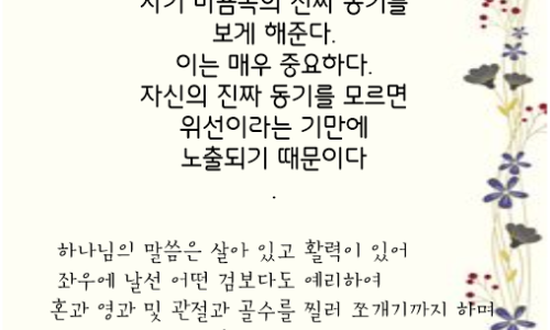 본문 : 사도행전 8:14-25 (찬송가 190장 성령이여 강림하사) 제목 : 돈으로 살수 없는 하나님의 선물, 성령 ▪ 성경 구절 : (행 8:14)○예루살렘에 있는 사도들이 사마리아도 하나님의 말씀을 받았다 함을 듣고 베드로와 요한을 보내매(행 8:15)그들이 내려가서 그들을 위하여 성령 받기를 기도하니 (행 8:16)이는 아직 한 사람에게도 성령 내리신 일이 없고 오직 주 예수의 이름으로 2)세례만 받을 뿐이더라 (행 8:17)이에 두 사도가 그들에게 안수하매 성령을 받는지라(행 8:18)시몬이 사도들의 안수로 성령 받는 것을 보고 돈을 드려(행 8:19)이르되 이 권능을 내게도 주어 누구든지 내가 안수하는 사람은 성령을 받게 하여 주소서 하니(행 8:20)베드로가 이르되 네가 하나님의 선물을 돈 주고 살 줄로 생각하였으니 네 은과 네가 함께 망할지어다(행 8:21)하나님 앞에서 네 마음이 바르지 못하니 이 3)도에는 네가 관계도 없고 분깃 될 것도 없느니라(행 8:22)그러므로 너의 이 악함을 회개하고 주께 기도하라 혹 마음에 품은 것을 사하여 주시리라(행 8:23)내가 보니 너는 악독이 가득하며 불의에 매인 바 되었도다(행 8:24)시몬이 대답하여 이르되 나를 위하여 주께 기도하여 말한 것이 하나도 내게 임하지 않게 하소서 하니라 (행 8:25)○두 사도가 주의 말씀을 증언하여 말한 후 예루살렘으로 돌아갈새 사마리아인의 여러 마을에서 복음을 전하니라 ▣ 본문 해석 빌립을 통하여 선포된 복음이 사마리아에서 대성공을 거두자 예루살렘 교회는 베드로와 요한을 파송하여 그들에게 성령이 임하도록 기도합니다. 그러나 마술사 출신의 시몬은 돈을 주고 성령의 능력을 사려다가 사도들로부터 심한 책망을 받게 됩니다. 사마리아 성에 나타난 성령역사(14-17) 예루살렘 교회는 빌립의 사마리아 선교활동의 성공적인 보고를 듣고 베드로와 요한을 파송합니다. 그들은 사마리아 사람들에게도 성령을 받도록 ‘기도’하고, 또 성령이 임하도록 ‘안수’했습니다. 그 이유는 아직 한 사람도 성령 내리신 일이 없고 오직 주 예수의 이름으로 세례만 받았기 때문입니다. 성령의 임하심을 체험하는 것은 안수를 통해서(9:17), 말씀을 듣는 가운데(10:44), 여럿이 모여 기도하는 곳에서(2:1-4)와 같이 여러 방편을 통해서입니다. 그러므로 안수를 통해서만 성령을 받는 것은 잘못된 생각이며 또한 사도에게만 성령이 내릴 수 있는 권한이 있다고 생각하는 것도 잘못된 생각입니다. 시몬의 내적인 모습(18-24) 시몬은 전직 마술사로서 많은 사람들에게 자칭 큰 자라고 했으며, ‘이 사람은 크다 일컫는 하나님의 능력’이라고 칭송을 받던 사람입니다. 시몬은 빌립으로부터 복음을 받아들이고 회개하여 빌립을 따르기는 했지만 영과 물질을 혼동하는 사람으로서, 돈과 성령을 같은 동일선상에 놓고 생각하였습니다. 성령은 하나님의 선물로서 구속적 선물로서 돈으로 가격을 따지거나 흥정할 수 없는 거룩한 영이십니다. 시몬의 마음은 ‘부정직, 악함, 악독, 불의’들로 가득 차 있었습니다. “시몬이 대답하여 가로되 나를 위하여 주께 기도하여 말한 것이 하나도 내게 임하지 말게 하소서 ”라고 했습니다. 불행스럽게도 시몬은 자신이 지은 죄를 회개하며 기도하지 않았습니다. 사도들이 자기를 위하여 기도해 주기를 바랐을 뿐입니다. 그는 베드로의 책망에 공포를 느낀 나머지 이런 말을 한 것이지 결코 회개의 기도가 없었습니다. 베드로와 요한의 증거(25) 베드로와 요한은 빌립으로부터 세례를 받은 자들에게 성령이 임재하도록 안수하고, 하나님의 권능을 돈으로 사려던 시몬을 엄중히 경고한 후에 그들은 계속해서 주의 말씀을 전했습니다. 참으로 부활하신 그리스도를 만나고 (마28:16-17), 성령의 충만함을 입은 사도들은 과거의 나약한 모습을 버리고 “때를 얻든지 못 얻든지”(딤후4:2) 어디서든 담대하게 복음을 전했던 것입니다. ※ 오늘의 기도: 하나님, 맡기신 사역을 제 명성과 이익을 얻기 위해 사용한 적은 없는지 엄중히 돌아봅니다. 항상 제 마음 깊은 곳을 살펴 하나님보다 앞서려는 약함이 있는지 살피고 주님 앞에 엎드리게 하소서. 성령의 권능으로 제 삶에 새겨진 하나님 말씀을 따라 하나님 이름만 높이게 하소서. http://qt.swim.org/user_utf/life/user_print_web.php ka