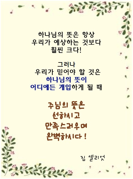 ※ 오늘의 기도: 하나님, 하나님의 기적은 사랑과 구원의 역사를 보여 주는 도구임을 기억하게 하소서. 무엇보다 가장 큰 기적은 이기적이고 탐욕이 가득한 제가 하나님과 이웃을 전심으로 섬기고 사랑하게 된 것입니다. 이 기막힌 기적에 감사하며 진리의 말씀을 전하게 하소서.