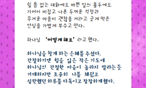 본문 : 느헤미야 3:15-32 (느 3:15)샘문은 미스바 지방을 다스리는 골호세의 아들 살룬이 중수하여 문을 세우고 덮었으며 문짝을 달고 자물쇠와 빗장을 갖추고 또 왕의 동산 근처 셀라 못 가의 성벽을 중수하여 다윗 성에서 내려오는 층계까지 이르렀고 느2:17(느 3:16)그 다음은 벧술 지방 절반을 다스리는 아스북의 아들 느헤미야가 중수하여 다윗의 묘실과 마주 대한 곳에 이르고 또 파서 만든 못을 지나 용사의 집까지 이르렀고 왕하20:20(느 3:17)그 다음은 레위 사람 바니의 아들 르훔이 중수하였고 그 다음은 그일라 지방 절반을 다스리는 하사뱌가 그 지방을 대표하여 중수하였고(느 3:18)그 다음은 그들의 형제들 가운데 그일라 지방 절반을 다스리는 헤나닷의 아들 바왜가 중수하였고(느 3:19)그 다음은 미스바를 다스리는 예수아의 아들 에셀이 한 부분을 중수하여 성 굽이에 있는 군기고 맞은편까지 이르렀고 느3:15, 대하26:9(느 3:20)그 다음은 삽배의 아들 바룩이 한 부분을 힘써 중수하여 성 굽이에서부터 대제사장 엘리아십의 집 문에 이르렀고 전9:10, 느3:1(느 3:21)그 다음은 학고스의 손자 우리야의 아들 므레못이 한 부분을 중수하여 엘리아십의 집 문에서부터 엘리아십의 집 모퉁이에 이르렀고(느 3:22)그 다음은 평지에 사는 제사장들이 중수하였고(느 3:23)그 다음은 베냐민과 핫숩이 자기 집 맞은편 부분을 중수하였고 그 다음은 아나냐의 손자 마아세야의 아들 아사랴가 자기 집에서 가까운 부분을 중수하였고(느 3:24)그 다음은 헤나닷의 아들 빈누이가 한 부분을 중수하되 아사랴의 집에서부터 성 굽이를 지나 성 모퉁이에 이르렀고(느 3:25)우새의 아들 발랄은 성 굽이 맞은편과 왕의 윗 궁에서 내민 망대 맞은편 곧 시위청에서 가까운 부분을 중수하였고 그 다음은 바로스의 아들 브다야가 중수하였고(느 3:26)(그 때에 느디님 사람은 오벨에 거주하여 동쪽 수문과 마주 대한 곳에서부터 내민 망대까지 이르렀느니라)(느 3:27)그 다음은 드고아 사람들이 한 부분을 중수하여 내민 큰 망대와 마주 대한 곳에서부터 오벨 성벽까지 이르렀느니라 느3:5(느 3:28)○마문 위로부터는 제사장들이 각각 자기 집과 마주 대한 부분을 중수하였고 왕하11:16(느 3:29)그 다음은 임멜의 아들 사독이 자기 집과 마주 대한 부분을 중수하였고 그 다음은 동문지기 스가냐의 아들 스마야가 중수하였고(느 3:30)그 다음은 셀레먀의 아들 하나냐와 살랍의 여섯째 아들 하눈이 한 부분을 중수하였고 그 다음은 베레갸의 아들 므술람이 자기의 방과 마주 대한 부분을 중수하였고(느 3:31)그 다음은 금장색 말기야가 함밉갓 문과 마주 대한 부분을 중수하여 느디님 사람과 상인들의 집에서부터 성 모퉁이 성루에 이르렀고(느 3:32)성 모퉁이 성루에서 양문까지는 금장색과 상인들이 중수하였느니라본문 요약 : 제사장, 레위 사람, 여자, 고위 관리, 금장잭, 상인 등 신분과 직업에 상관없이 많은 백성이 공시에 참여합니다. 그들은 대체로 자기 집에서 가까운 부분을 맡아 중수 합니다. 성벽 중수 공사는 샘문, 수문, 마문, 동움 함밉갓문을 거쳐 공사가 처음 시작되었던 양문에서 끝납니다.