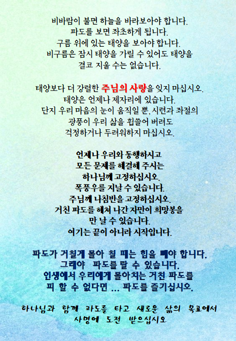 | (살전 5:21) | 범사에 헤아려 좋은 것을 취하고 |