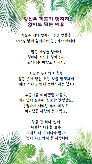 - 이전글8월 4일 성벽 재건과 예루살렘 회복의 비전 24.09.03