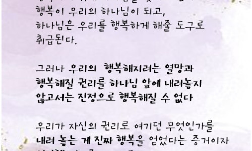 본문 : 사무엘상 14:24-35 (찬송가 391 오 놀라운 구세주) 제목 : 어리석은 금식 선포, 계명을 범하는 백성 ▪ 성경 구절 : (삼상 14:24)○이 날에 이스라엘 백성들이 피곤하였으니 이는 사울이 백성에게 맹세시켜 경계하여 이르기를 저녁 곧 내가 내 원수에게 보복하는 때까지 아무 음식물이든지 먹는 사람은 저주를 받을지어다 하였음이라 그러므로 모든 백성이 음식물을 맛보지 못하고(삼상 14:25)그들이 다 수풀에 들어간즉 땅에 꿀이 있더라(삼상 14:26)백성이 수풀로 들어갈 때에 꿀이 흐르는 것을 보고도 그들이 맹세를 두려워하여 손을 그 입에 대는 자가 없었으나(삼상 14:27)요나단은 그의 아버지가 백성에게 맹세하여 명령할 때에 듣지 못하였으므로 손에 가진 지팡이 끝을 내밀어 벌집의 꿀을 찍고 그의 손을 돌려 입에 대매 눈이 밝아졌더라 (삼상 14:28)그 때에 백성 중 한 사람이 말하여 이르되 당신의 부친이 백성에게 맹세하여 엄히 말씀하시기를 오늘 음식물을 먹는 사람은 저주를 받을지어다 하셨나이다 그러므로 백성이 피곤하였나이다 하니(삼상 14:29)요나단이 이르되 내 아버지께서 이 땅을 곤란하게 하셨도다 보라 내가 이 꿀 조금을 맛보고도 내 눈이 이렇게 밝아졌거든 (삼상 14:30)하물며 백성이 오늘 그 대적에게서 탈취하여 얻은 것을 임의로 먹었더라면 블레셋 사람을 살륙함이 더욱 많지 아니하였겠느냐(삼상 14:31)○그 날에 백성이 믹마스에서부터 아얄론에 이르기까지 블레셋 사람들을 쳤으므로 그들이 심히 피곤한지라(삼상 14:32)백성이 이에 탈취한 물건에 달려가서 양과 소와 송아지들을 끌어다가 그것을 땅에서 잡아 피째 먹었더니 (삼상 14:33)무리가 사울에게 전하여 이르되 보소서 백성이 고기를 피째 먹어 여호와께 범죄하였나이다 사울이 이르되 너희가 믿음 없이 행하였도다 이제 큰 돌을 내게로 굴려 오라 하고(삼상 14:34)또 사울이 이르되 너희는 백성 중에 흩어져 다니며 그들에게 이르기를 사람은 각기 소와 양을 이리로 끌어다가 여기서 잡아 먹되 피째로 먹어 여호와께 범죄하지 말라 하라 하매 그 밤에 모든 백성이 각각 자기의 소를 끌어다가 거기서 잡으니라(삼상 14:35)사울이 여호와를 위하여 제단을 쌓았으니 이는 그가 여호와를 위하여 처음 쌓은 제단이었더라 ▣ 본문 해설 날로 더해가는 사울의 영적 타락과 독선적 행위는 이스라엘을 하나님 앞에서 범죄케 하였습니다. 사울은 무모하게 금식령을 내렸던 것입니다. 그것은 지친 군인들에게 무익했고 폭군의 횡포에 불과했습니다. 또한 그 명령은 추격한 군사들로 하여금 탈취한 짐승을 피있는 채 먹게 하는 결과를 가져 왔습니다. 사울의 무모한 금식령(24) 사울은 블레셋과의 전쟁을 빨리 끝내기 위하여 백성들에게 한날을 금식하도록 명합니다. 이러한 명령은 하나님에 대한 헌신의 징표로 보이기도 하지만, 하나님께서 기뻐하시는 행위는 아니었습니다. “이 날에 백성들이 피곤하였으매”라는 말은 ‘곤욕을 당하다’, ‘괴로움을 당하다’라는 뜻으로, 자신의 지나친 열심이 다른 사람들에게 피해를 줄 뿐만 아니라, 오히려 하나님의 뜻을 거스릴 수도 있다는 사실을 보여줍니다. 요나단의 무고한 실수(25-30) 사울의 명령으로 말미암아 눈앞에 꿀을 두고도 먹지 못하는 병사들과는 반대로, 사울의 명령을 듣지 못한 요나단은 꿀을 먹게 됩니다. 이러한 광경을 목격한 병사들이 요나단에게 사울의 명령에 대해 말하지만, 오히려 요나단은 “내 부친이 이 땅으로 곤란케 하셨도다”라는 고백으로 사울의 명령이 잘못된 것임을 지적합니다. 더 나아가서 “대적에게서 탈취하여 얻은 것을 임의로 먹었더면 블레셋 사람을 탈취함이 더욱 많지 않았겠느냐”는 부언으로 더 많은 성과를 거둘 수 있었음을 지적합니다. 이와같이 사울 한 사람의 잘못된 명령은 전장에 나간 백성들이 아무것도 먹지 못하도록 하여 괴로움을 안겨 주었으며, 그 결과 효과적이며 더 좋은 성과를 얻지 못하였습니다. 백성들의 범죄(31-35) “그 날에 백성이 믹마스에서 아얄론에 이르기까지 블레셋 사람을 쳤으므로”라는 말씀은 이스라엘 백성들이 금식하는 날, 믹마스에서 20km떨어진 아얄론까지 공격한 것을 말합니다. 충분한 음식을 취해도 힘든 전쟁이었는데, 금식하면서 강한 군대를 가진 블레셋을 공격한다는 것은 결코 쉬운 일이 아닙니다. 그러나 하나님께서 그들과 함께 하셨으므로 이스라엘이 승리하게 되었고, 후에 사울은 하나님께 감사의 제단을 쌓게 됩니다. 그러나 사울이 정한 금식 시한이 지나자 이스라엘 백성들은 허기진 배를 채우기 위하여 짐승을 땅에서 잡아 율법에서 금하고 있는 두 가지의 죄를 범하게 됩니다. 한가지는 소와 송아지를 같은 날에 잡아 먹지 말라는 것(레22:28)이며 또 한 가지는 고기를 피채 먹는 것(창9:4;레17:10-14;신12:23)입니다. 이들은 짐승을 잡아 피있는 채 먹지 못하도록 큰 바위 위에서 가축을 잡아 피를 빼야 하는데, 그냥 맨 땅에서 짐승을 잡아 피있는 채 먹었던 것입니다. ※ 오늘의 기도: 하나님, 지도자들에게 올바른 분별력과 판단력을 주소서. 하나님 뜻을 묻지도 않고 저의 열심만 앞세워 공동체를 곤란하게 하는 일