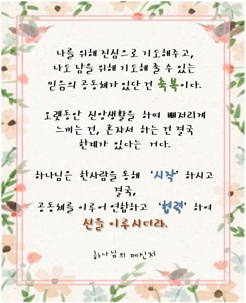 하나님과 바른 관계를 맺어 하나님 뜻에 겸손히 순종하고, 공동체에 유익을 까치는 선한 일에 쓰임 받게 하소서,