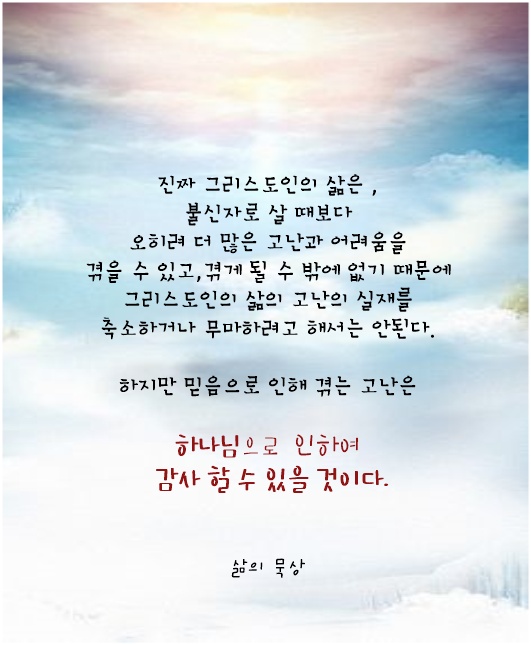 변함없이 저를 도우시고 인도하시는 구원자 예수님을 의지하며 어디서나 최선을 다하게 하소서,