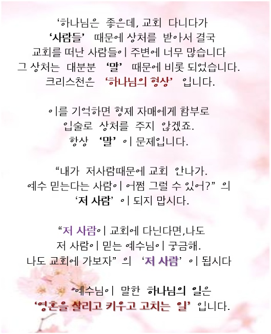 항상 하나님의 말씀을 읽고 듣고 묵상하며 즐거이 순종하는 성도가 되게 하소서.