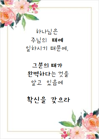 November 07, 2022 . 아름다운동산교회 11/6 매일 묵상 페이지 정보 작성자 아름다운동산교회 댓글 0건 조회 1,766회 작성일 22-11-07 07:51 목록 본문 그러므로 내일 일을 위하여 염려하지 말라 내일 일은 내일이 염려할 것이요 한 날의 괴로움은 그 날로 족하니라. (마 6: 34) Therefore do not worry about tomorrow, for tomorrow will worry about itself. Each day has enough trouble of its own. 이전글11/8 매일 성경 22.11.08 다음글11/6 매일 묵상 22.11.05 목록