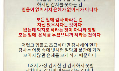 이러므로 우리에게 구름 같이 둘러싼 허다한 증인들이 있으니 모든 무거운 것과 얽매이기 쉬운 죄를 벗어 버리고 인내로써 우리 앞에 당한 경주를 하며믿음의 주요 또 온전하게 하시는 이인 예수를 바라보자 그는 그 앞에 있는 기쁨을 위하여 십자가를 참으사 부끄러움을 개의치 아니하시더니 하나님 보좌 우편에 앉으셨느니라 (히 12:1-2) Therefore, since we are surrounded by such a great cloud of witnesses, let us throw off everything that hinders and the sin that so easily entangles, and let us run with perseverance the race marked out for us.Let us fix our eyes on Jesus, the author and perfecter of our faith, who for the joy set before him endured the cross, scorning its shame, and sat down at the right hand of the throne of God.