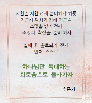 July 03, 2022 . 아름다운동산교회 7/3 매일 묵상 페이지 정보 작성자 아름다운동산교회 댓글 0건 조회 1,822회 작성일 22-07-03 04:21 목록 본문 이는 나 여호와 너의 하나님이 네 오른손을 붙들고 네게 이르기를 두려워하지 말라 내가 너를 도우리라 할 것임이니라 (이사야 41:13) For I am the LORD, your God, who takes hold of your right hand and says to you, Do not fear; I will help you. 이전글7/4 매일 묵상 22.07.04 다음글7/2 매일 묵상 22.07.01 목록