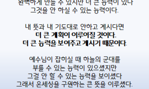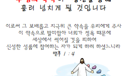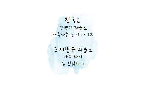 예수를 너희가 보지 못하였으나 사랑하는도다 이제도 보지 못하나 믿고 말할 수 없는 영광스러운 즐거움으로 기뻐하니 믿음의 결국 곧 영혼의 구원을 받음이라 (벧전 1:8-9) Whom having not seen, ye love; in whom, though now ye see him not, yet believing, ye rejoice with joy unspeakable and full of glory: Receiving the end of your faith, even the salvation of your souls.