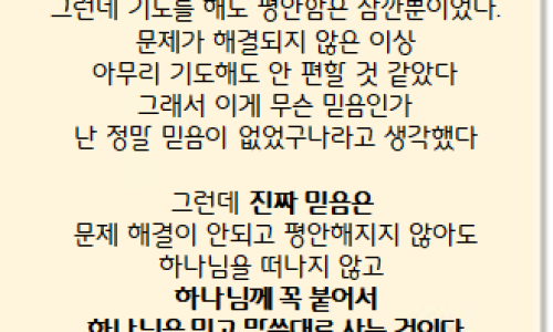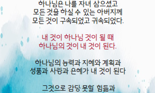 야곱아 너를 창조하신 여호와께서 지금 말씀하시느니라 이스라엘아 너를 지으신 이가 말씀하시느니라 너는 두려워하지 말라 내가 너를 구속하였고 내가 너를 지명하여 불렀나니 너는 내 것이라(이사야 43:1) But now thus saith the Lord that created thee, O Jacob, and he that formed thee , O Israel, Fear not: for I have redeemed thee, I have called thee by thy name; thou art mine.