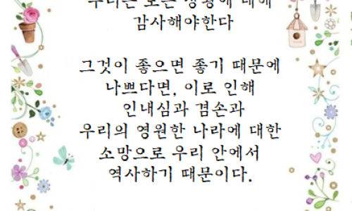 본문 : 왕상 8:54-66 이스라엘의 희년을 기다린 솔로몬은 하나님 앞에 성전을 봉헌합니다. 이는 성전건축을 마친 후 11개월만에(6:38) 이루어진 일로서 이 절기에는 이스라엘 민족이 모이는 때였으므로 성전을 봉헌하는 데 적절한 시기였다고 볼 수 있습니다. 이에 솔로몬은 하나님께 감사와 영광을 돌린 후 모인 백성들에게 축복과 권고의 메세지를 전달하며 화목제의 희생을 드리고 나서 성전의 봉헌식을 마칩니다. 백성들을 향한 솔로몬의 축복(54-61) 하나님 앞에 진실한 헌신의 표시라고 할 수있는 하나님의 법궤가 놓여진 순간, 이것을 기쁘게 여기신 하나님께서는 자신의 영광을 성소에 가득하게 하셨습니다(왕상8:1-11). 이에 솔로몬은 먼저 무릎을 꿇고 손을 펴서 하늘을 향하여 하나님께서 열조와 함께 계셨던 것처럼 모든 백성과 함께 계시고 결코 떠나시거나 버리시지 말 것을 기도합니다. 뿐만 아니라 백성들의 마음이언제나 하나님을 향하여 열조에게 명하신 계명과 법도와 율례를 지킬 수 있으며, 하나님께서 왕과 백성을 다스리시며 돌보시고 있음을 만민들이 알게 해 주실 것을 간구합니다. 그리고 그는 백성들의 마음이 그 법도를 행하며 그 계명을 지킬 것을 권면하면서 그곳에 모인 온 회중들을 향하여 큰 소리로 축복하고 있습니다. 우리에게있어 진정한 축복은 하나님께서 우리와 함께 하신다는 임마누엘의 축복입니다. 솔로몬과 백성들의 희생 제사(62-66) 솔로몬과 전국에서 모여든 백성들이 하나님께 드린 희생 제물은 소가 22,000마리, 양이 120,000마리나 되었습니다. 이에 솔로몬은 놋단이 작아 번제물과 소제물과 화목제의 기름을 다 용납할 수 없게 되자 성전앞뜰의 가운데를 거룩히 구별하고 거기서 번제와 소제와 감사제를 드렸습니다. 뿐만아니라 백성들은 각종 악기들을 동원하여 하나님을 찬양했습니다(대하7:4-10). 솔로몬이 지킨 절기는 ‘하맛 어귀에서부터 애굽 하수까지’의 온 이스라엘 백성들과 더불어 먼저 7일 간을 성전 봉헌의 절기로 지키고, 이어서 7일간을 장막절로 지켰기때문에 14일 간을 여호와 앞에서 절기로 지킨 것입니다. 이 축제를 통하여 백성들은하나님 앞에서 혼연일체가 되었으며 솔로몬의 축복을 받은 백성들은 여호와께서 베푸신 모든 은혜를 인하여 왕을 축복하며 자기 장막으로 돌아갔습니다. 이러한 기쁨과 즐거움은 모두 다 신실하게 언약을 지키신 하나님으로 말미암아 주어진 것입니다. 이와 같이 오늘날 성도의 삶에 찾아오는 참된 기쁨과 즐거움도 오직 그리스도안에서 이루어지는 것이며 한마음으로 서로가 서로를 위하여 축복을 빌어주는 것에서 시작되는 것입니다.