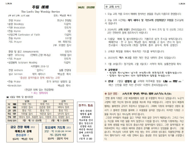 1/28/24 교회 주보 페이지 정보 작성자 아름다운동산교회 댓글 0건 조회 2,529회 작성일 24-01-27 07:59 목록 본문 1/28/24 이전글02/04/24 교회 주보 24.02.03 다음글1/21/24 교회 주보 24.01.20 댓글 0 댓글목록 등록된 댓글이 없습니다. 목록