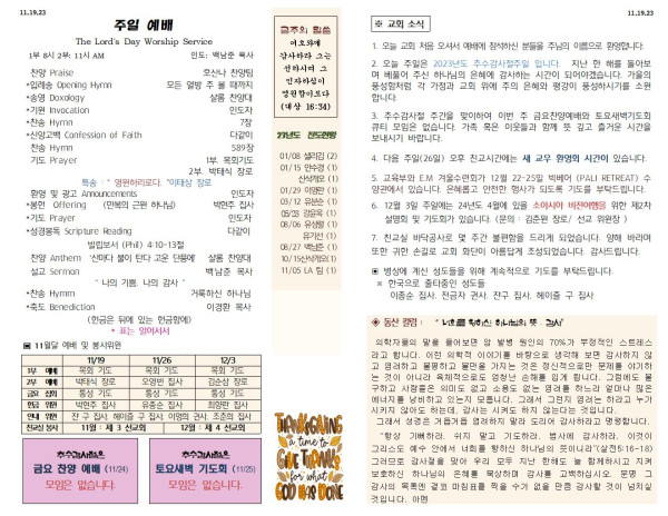 11/19/23 교회주보 페이지 정보 작성자 아름다운동산교회 댓글 0건 조회 2,673회 작성일 23-11-18 11:36 목록 본문 11/19/23 이전글11/26/23 교회 주보 23.11.25 다음글11/12/23 교회 주보 23.11.11 댓글 0 댓글목록 등록된 댓글이 없습니다. 목록
