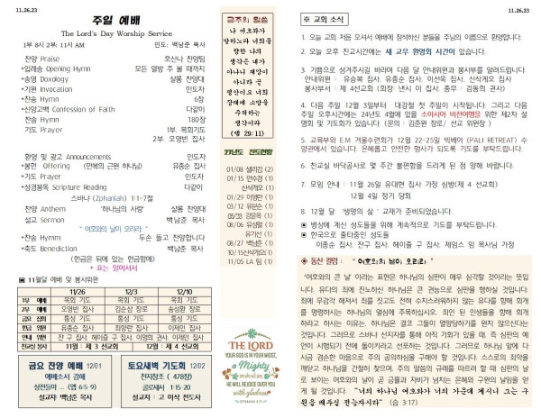11/26/23 교회 주보 페이지 정보 작성자 아름다운동산교회 댓글 0건 조회 2,460회 작성일 23-11-25 17:34 목록 본문 11/26/23 이전글12/03/23 교회 주보 23.12.02 다음글11/19/23 교회주보 23.11.18 댓글 0 댓글목록 등록된 댓글이 없습니다. 목록