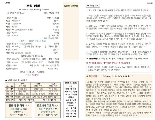 01/07/24 주일 주보 페이지 정보 작성자 아름다운동산교회 댓글 0건 조회 2,625회 작성일 24-01-06 08:38 목록 본문 01/07/24 이전글01/14/24 교회 주보 24.01.13 다음글12/32/23 교회 주보 23.12.30 댓글 0 댓글목록 등록된 댓글이 없습니다. 목록
