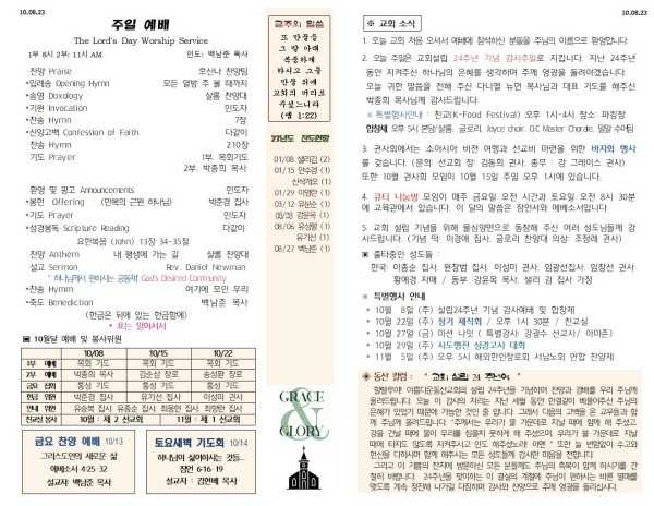 10-08-23 교회 주보 페이지 정보 작성자 아름다운동산교회 댓글 0건 조회 2,589회 작성일 23-10-07 06:56 목록 본문 10-08-23 이전글교회 주보 10/15/23 23.10.14 다음글09-24-23 교회 주보 23.09.17 댓글 0 댓글목록 등록된 댓글이 없습니다. 목록