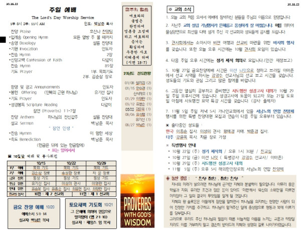 교회 주보 10/15/23 페이지 정보 작성자 아름다운동산교회 댓글 0건 조회 2,593회 작성일 23-10-14 06:57 목록 본문 10/15/23 이전글10/22/23 교회 주보 23.10.21 다음글10-08-23 교회 주보 23.10.07 댓글 0 댓글목록 등록된 댓글이 없습니다. 목록