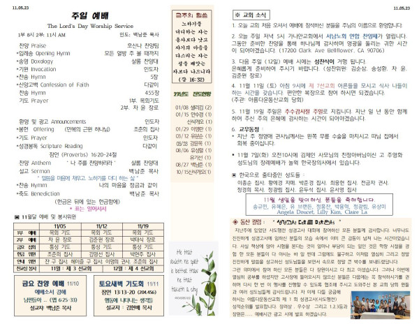 11/5/23 교회 주보 페이지 정보 작성자 아름다운동산교회 댓글 0건 조회 2,550회 작성일 23-11-04 09:18 목록 본문 11/5/23 이전글11/12/23 교회 주보 23.11.11 다음글10/29/23 교회 주보 23.10.28 댓글 0 댓글목록 등록된 댓글이 없습니다. 목록