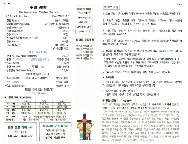 5/28/23 교회 주보 페이지 정보 작성자 아름다운동산교회 댓글 0건 조회 2,505회 작성일 23-05-27 13:00 목록 본문 5/28/23 이전글06/04/23 교회 주보 23.06.03 다음글05/21/23 교회 주보 23.05.20 댓글 0 댓글목록 등록된 댓글이 없습니다. 목록