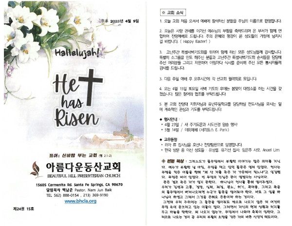 04-09-23 교회 주보 페이지 정보 작성자 아름다운동산교회 댓글 0건 조회 2,566회 작성일 23-04-08 07:59 목록 본문 04-09-23 이전글04/16/23 교회 주보 23.04.15 다음글04/02/23 교회 주보 23.04.01 댓글 0 댓글목록 등록된 댓글이 없습니다. 목록