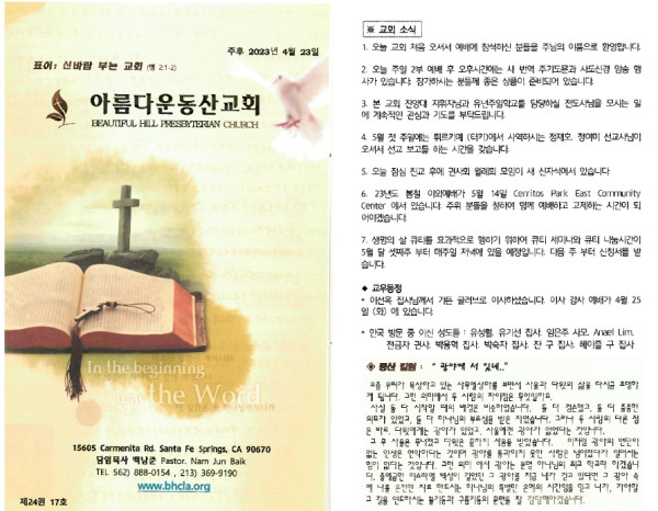 04-23-23 교회 주보 페이지 정보 작성자 아름다운동산교회 댓글 0건 조회 2,219회 작성일 23-04-22 07:50 목록 본문 04-23-23 이전글04/30/23 교회 주보 23.04.29 다음글04/16/23 교회 주보 23.04.15 댓글 0 댓글목록 등록된 댓글이 없습니다. 목록