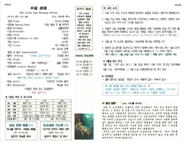 05/07/23 교회 주보 페이지 정보 작성자 아름다운동산교회 댓글 0건 조회 2,510회 작성일 23-05-06 09:03 목록 본문 05/07/23 이전글05/14/23 교회 주보 23.05.13 다음글04/30/23 교회 주보 23.04.29 댓글 0 댓글목록 등록된 댓글이 없습니다. 목록