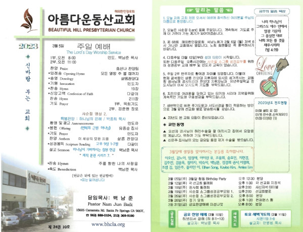 03/05/23 교회 주보 페이지 정보 작성자 아름다운동산교회 댓글 0건 조회 2,299회 작성일 23-03-04 08:43 목록 본문 03/05/23 이전글03/12/23 교회 주보 23.03.11 다음글02/26/23 교회 주보 23.02.25 댓글 0 댓글목록 등록된 댓글이 없습니다. 목록