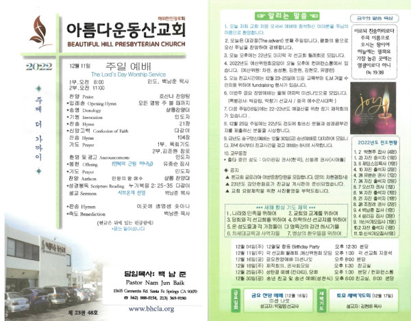 12/11/22 교회 주보 페이지 정보 작성자 아름다운동산교회 댓글 0건 조회 2,207회 작성일 22-12-10 08:24 목록 본문 12/11/22 이전글12/18/22 교회 주보 22.12.17 다음글12/04/22 교회 주보 22.12.03 댓글 0 댓글목록 등록된 댓글이 없습니다. 목록
