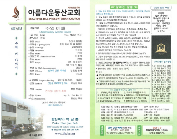 12/25/22 교회 주보 페이지 정보 작성자 아름다운동산교회 댓글 0건 조회 2,461회 작성일 22-12-24 09:44 목록 본문 12/25/22 이전글1월 1일 23년도 22.12.31 다음글12/18/22 교회 주보 22.12.17 댓글 0 댓글목록 등록된 댓글이 없습니다. 목록
