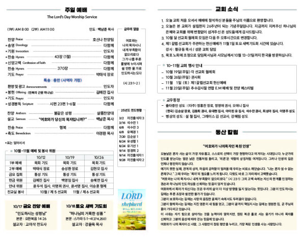 10/12/25 교회 주보 페이지 정보 작성자 아름다운동산교회 댓글 0건 조회 362회 작성일 25-10-11 09:25 목록 본문 10/12/25 이전글10/19/25 교회 주보 25.10.25 다음글10/05/25 교회 주보 25.10.04 댓글 0 댓글목록 등록된 댓글이 없습니다. 목록