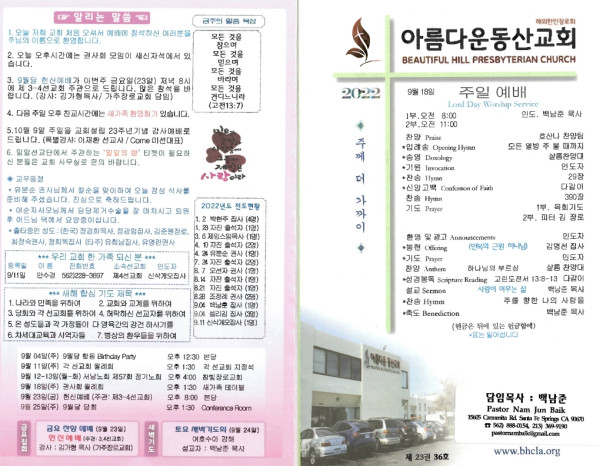 09/18/22 페이지 정보 작성자 아름다운동산교회 댓글 0건 조회 2,909회 작성일 22-09-18 12:49 목록 본문 09/18/22 이전글09/25/22 교회 주보 22.09.24 다음글09/11/22 교회 주보 22.09.10 댓글 0 댓글목록 등록된 댓글이 없습니다. 목록