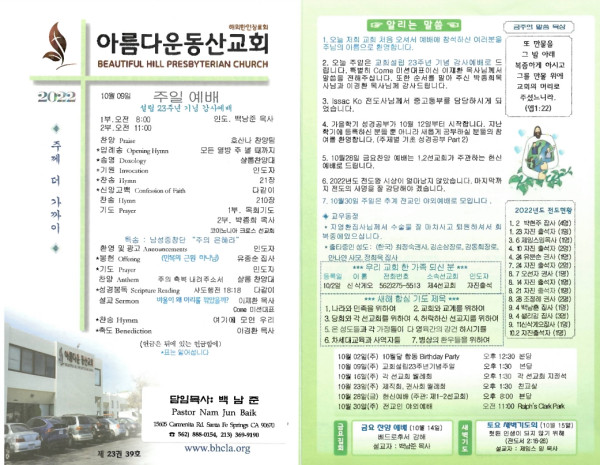10-09-22 교회 주보 페이지 정보 작성자 아름다운동산교회 댓글 0건 조회 2,706회 작성일 22-10-08 08:05 목록 본문 10-09-22 이전글10/16/22 교회 주보 22.10.15 다음글10-02-22 22.10.01 댓글 0 댓글목록 등록된 댓글이 없습니다. 목록