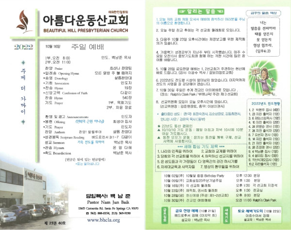 10/16/22 교회 주보 페이지 정보 작성자 아름다운동산교회 댓글 0건 조회 2,556회 작성일 22-10-15 08:51 목록 본문 10/16/22 이전글10/23/22 교회 주보 22.10.22 다음글10-09-22 교회 주보 22.10.08 댓글 0 댓글목록 등록된 댓글이 없습니다. 목록