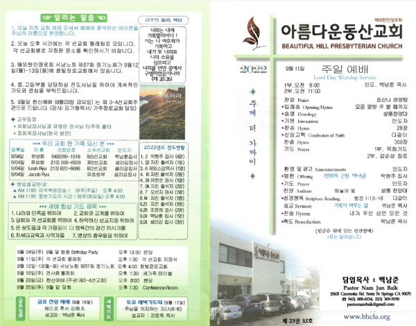 09/11/22 교회 주보 페이지 정보 작성자 아름다운동산교회 댓글 0건 조회 2,677회 작성일 22-09-10 09:51 목록 본문 09/11/22 이전글09/18/22 22.09.18 다음글09/04/22 교회 주보 22.09.03 댓글 0 댓글목록 등록된 댓글이 없습니다. 목록