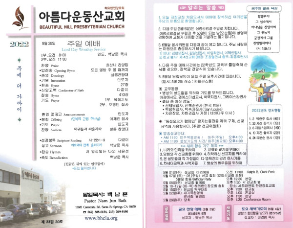 05/29/22 페이지 정보 작성자 아름다운동산교회 댓글 0건 조회 2,802회 작성일 22-05-29 12:46 목록 본문 05/29/22 이전글06/05/22 교회 주보 22.06.04 다음글05/22/22 22.05.22 댓글 0 댓글목록 등록된 댓글이 없습니다. 목록