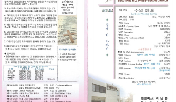 03/13/22 교회 주보