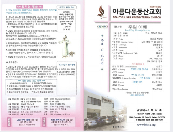 03/27/22 교회 주보 페이지 정보 작성자 아름다운동산교회 댓글 0건 조회 2,990회 작성일 22-03-27 09:08 목록 본문 03/27/22 이전글04/03/22 교회 주보 22.04.02 다음글03/20/22 교회 주보 22.03.19 댓글 0 댓글목록 등록된 댓글이 없습니다. 목록