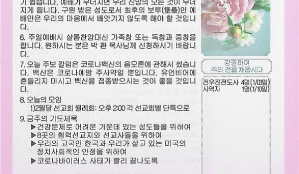 02/21/21 주일 교회 소식