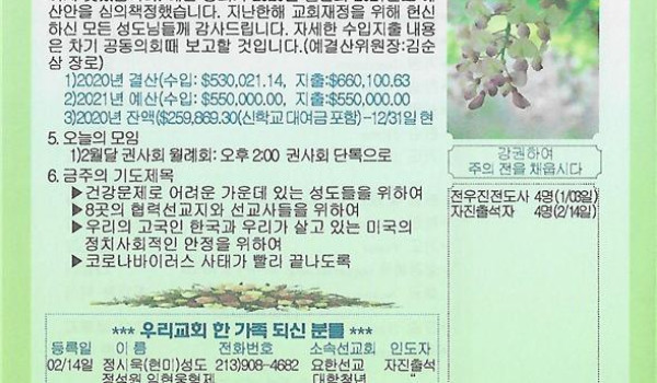 02/14/21 주일 교회 소식