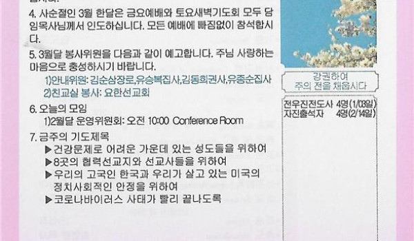 03/14/21 주일 교회 소식