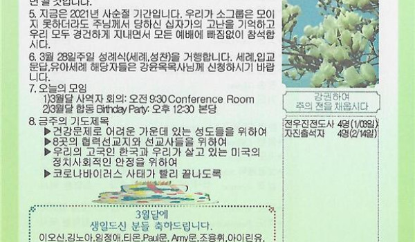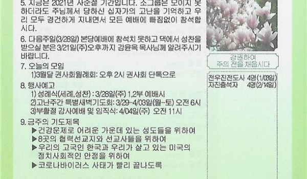 03/21/21 주일 교회 소식