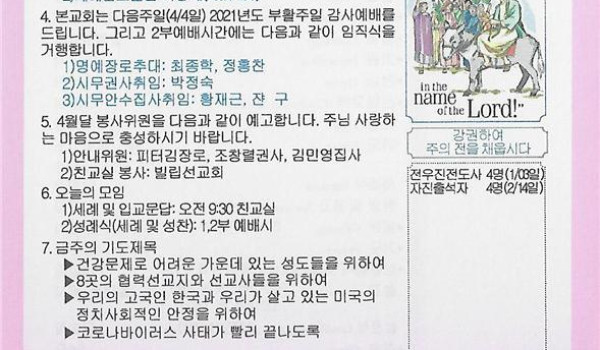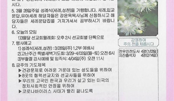 03/28/21 주일 교회 소식