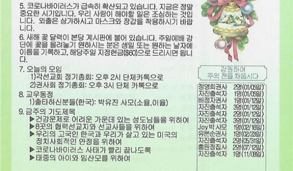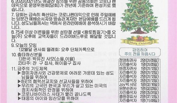 12/20/20 주일 교회 소식